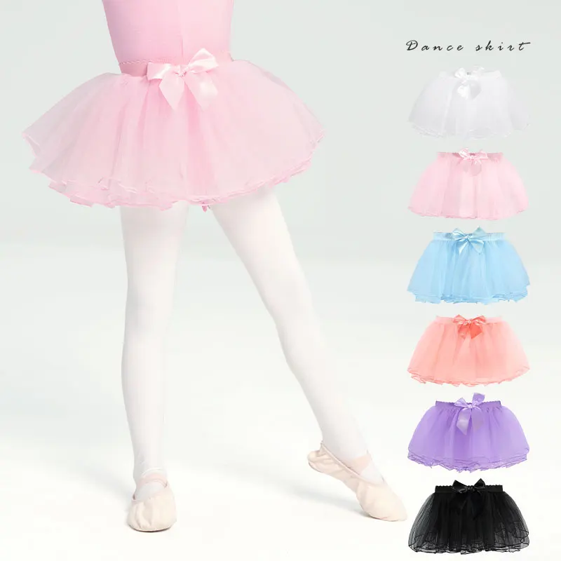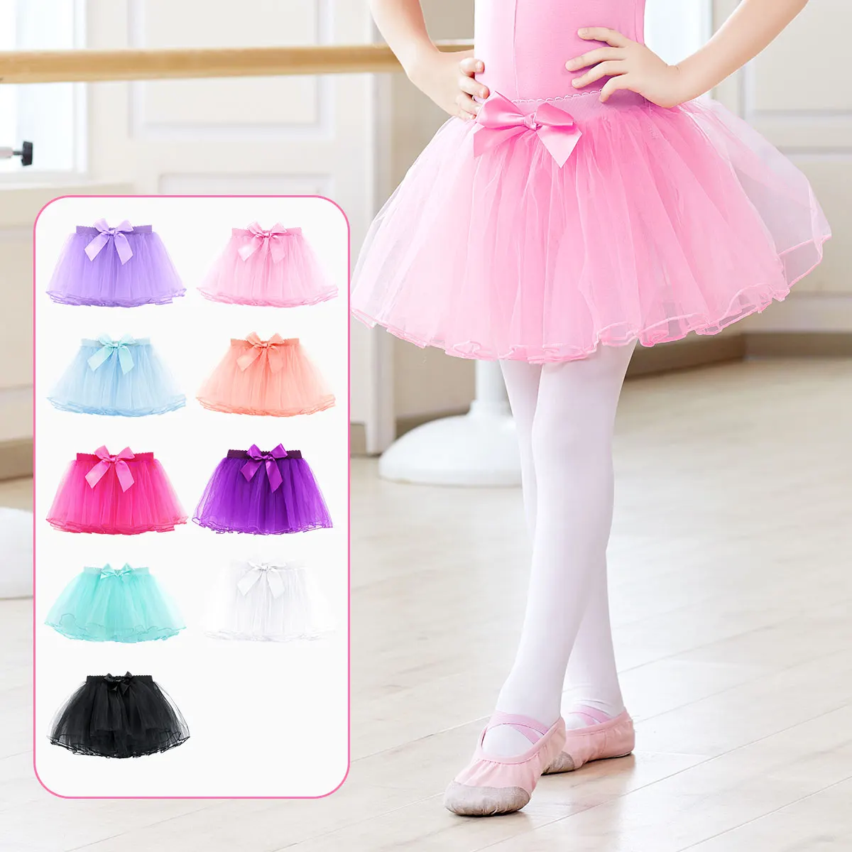Girls Fluffy Dance Tutu Skirt Satin Bow Knot Tulle Skirts Ballet Dance Costumes Puffy Short Dresses For Dancing